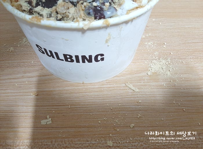 보통 밑에 하얀 빙수가 저렇게 많기 때문에 미리 위에 토핑과 섞어줬다.