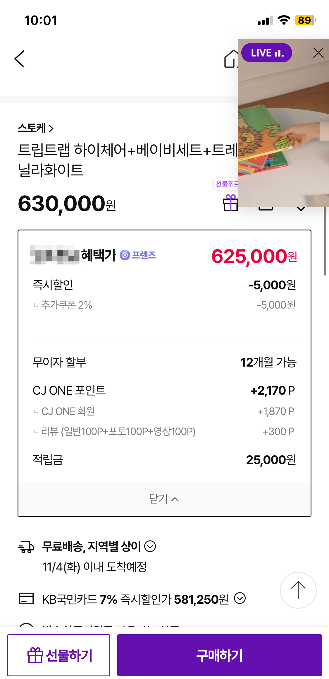 저는 운좋게 라이브방송 할인 이벤트로 구매했지만,