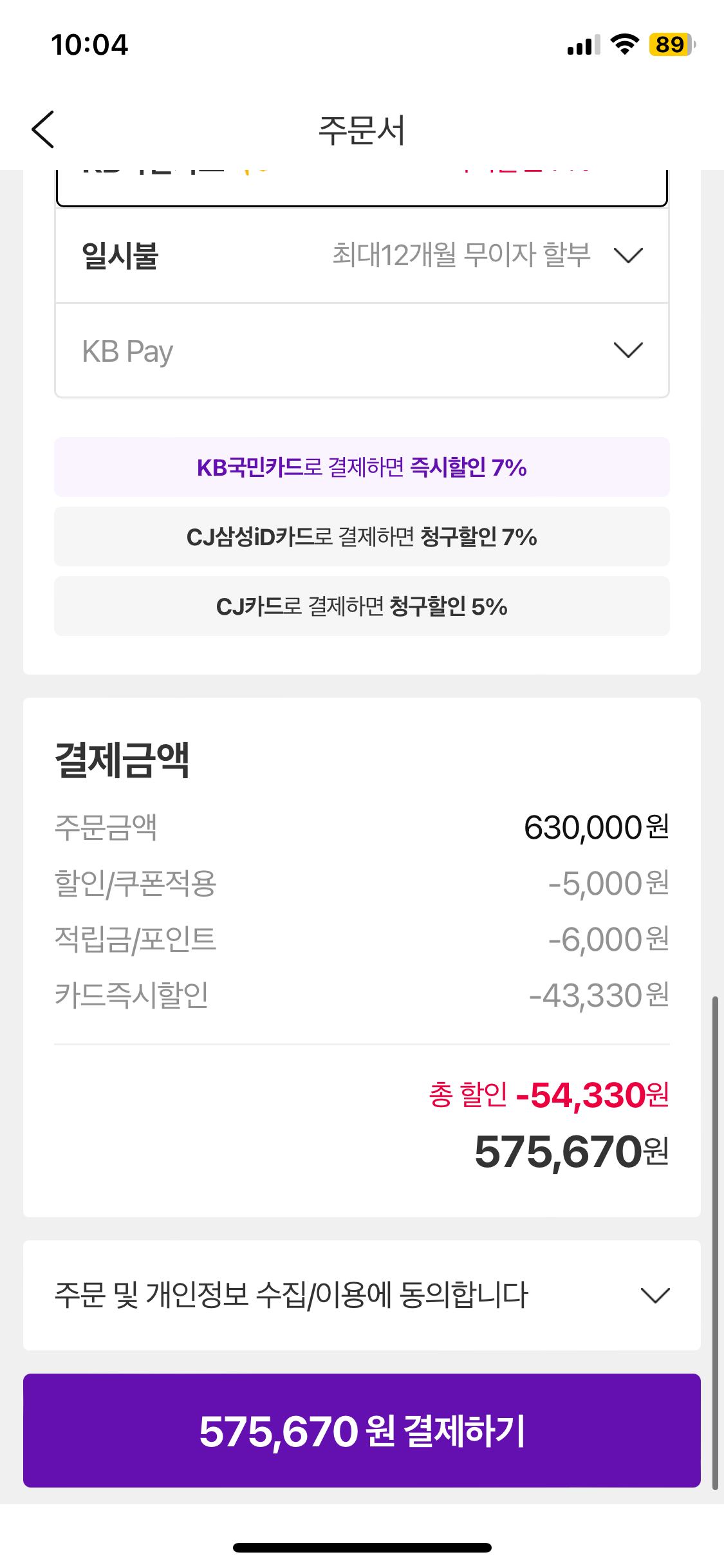 적립금이랑 cj one 포인트도 적립 예정입니다.