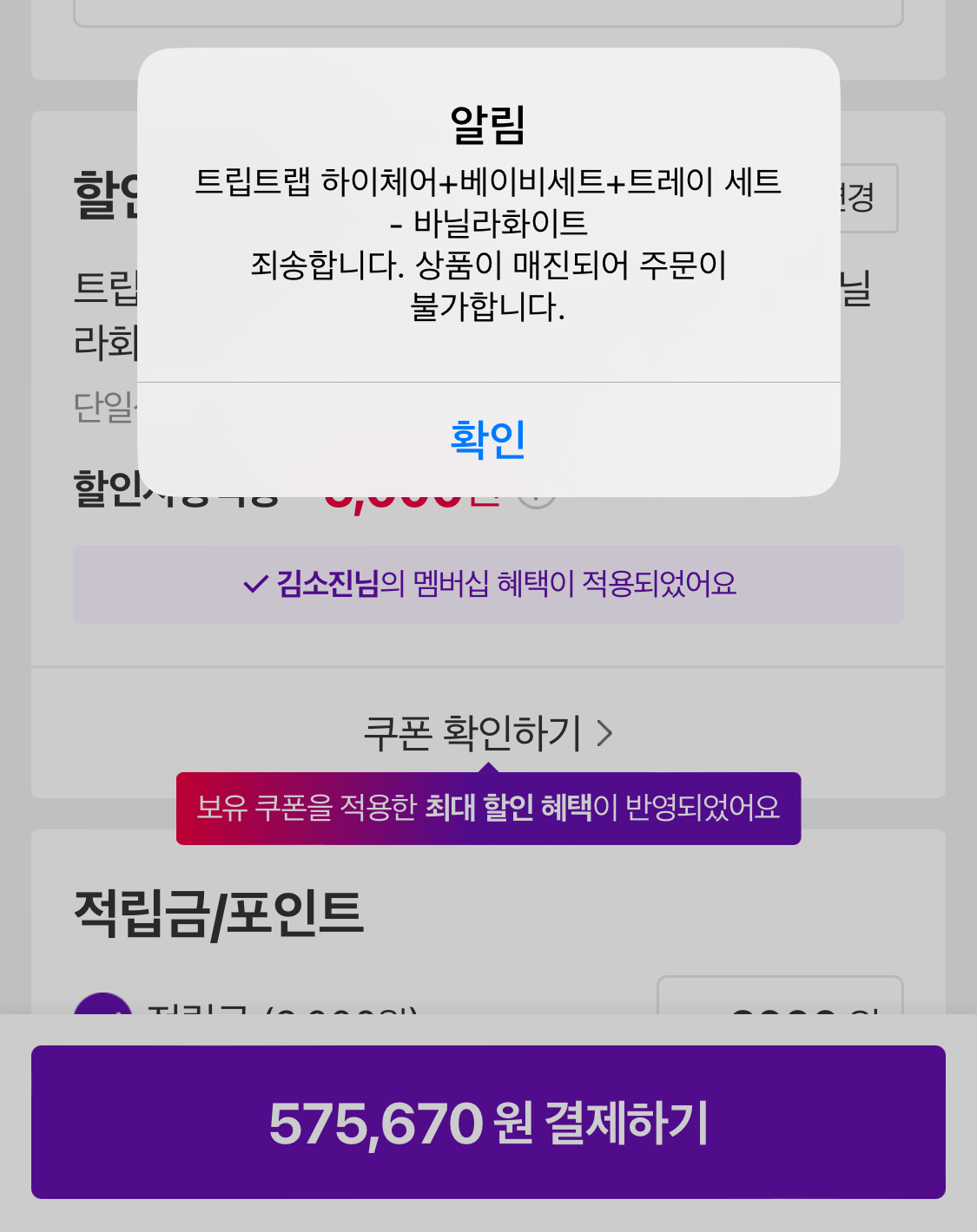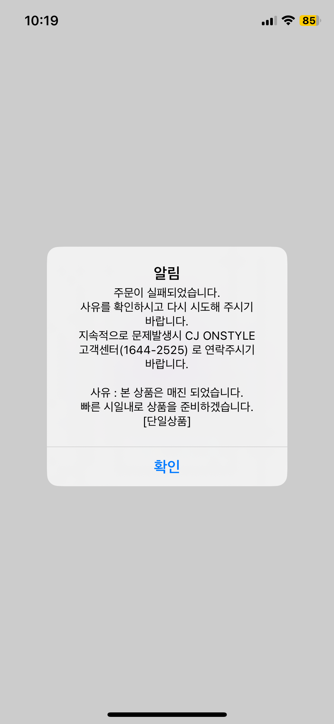 매진되어 주문이 불가하다는 알림이 뜹니다..