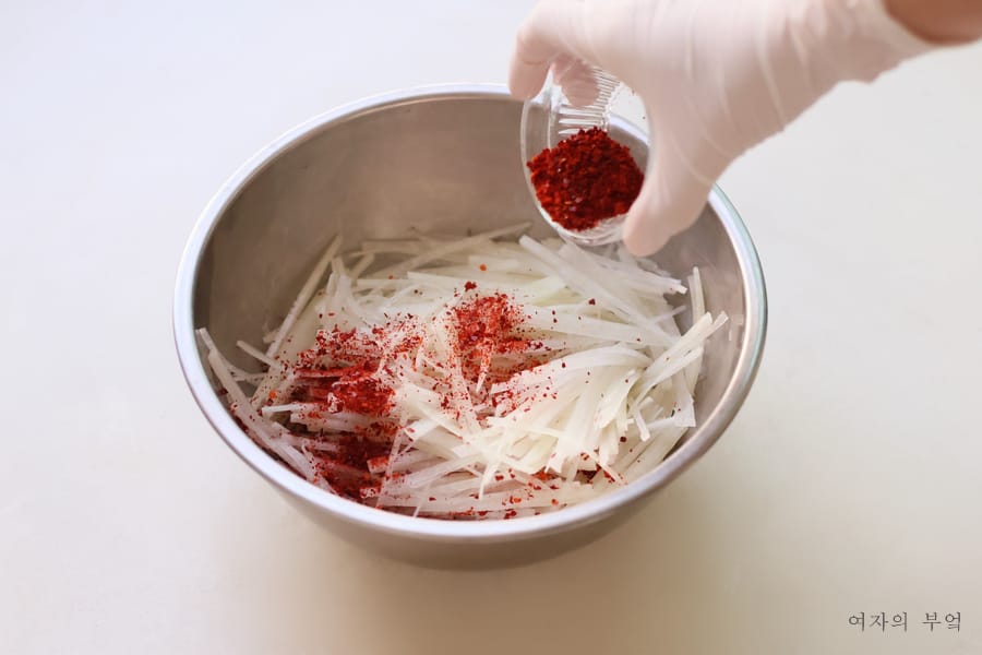 무생채 레시피 만들 때 무에 색감을 곱게 들이기 위해서