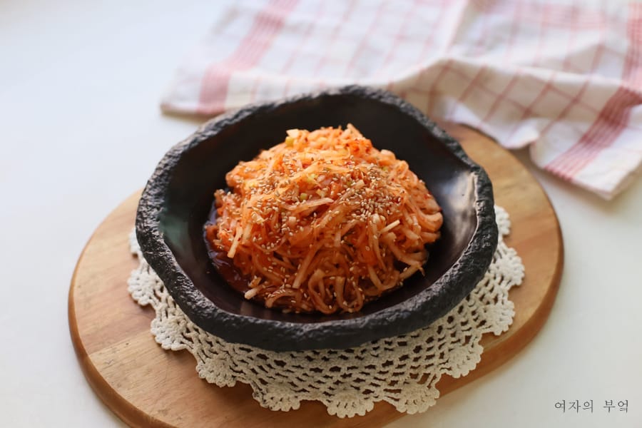 처음에는 무채가 뻣뻣하게 느껴질 수도 있지만