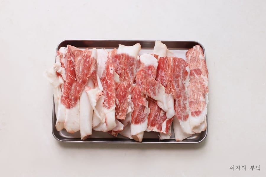 냉동 차돌박이는 살짝 녹여서 물기를 닦아주고