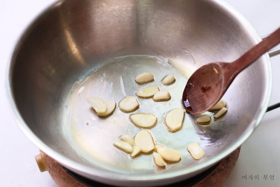 식용유를 1.5스푼 두르고 마늘을 볶아서 향을 낸다.