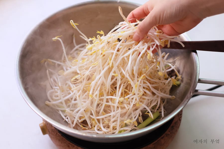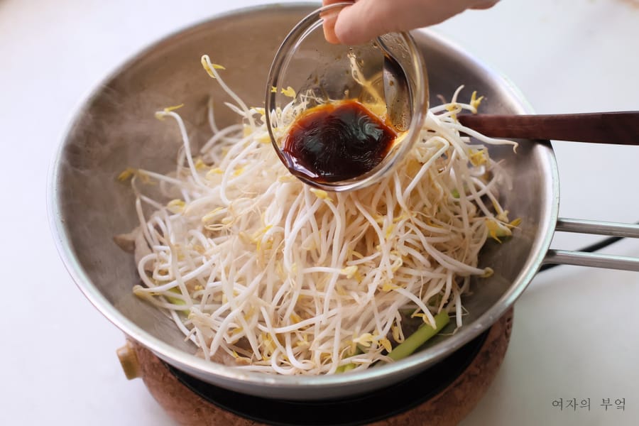 불의 세기가 약하면 숙주나물 식감이 물러지고