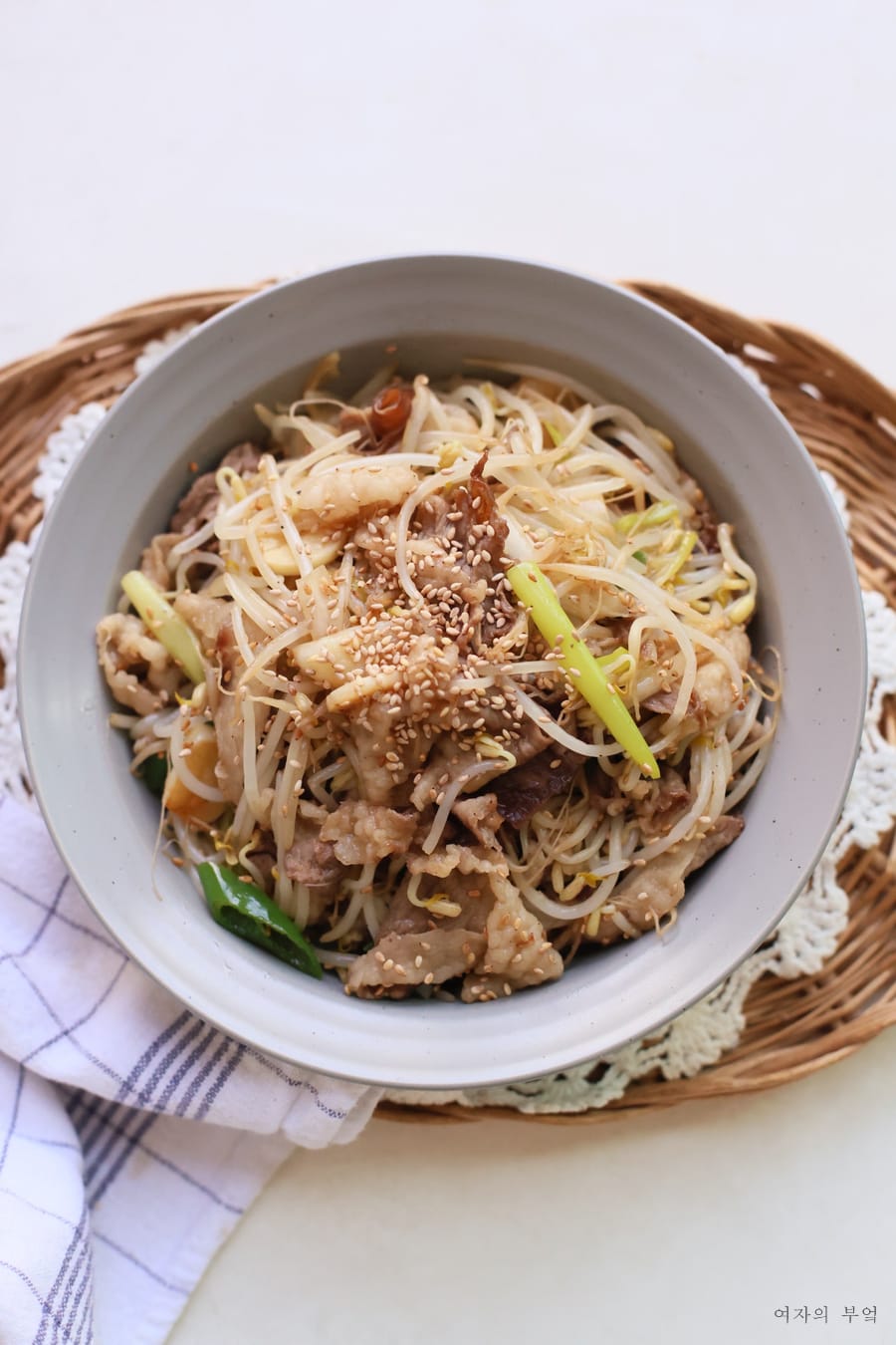 통깨 솔솔 뿌려서 소고기 숙주볶음 레시피 완성했더니