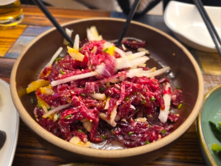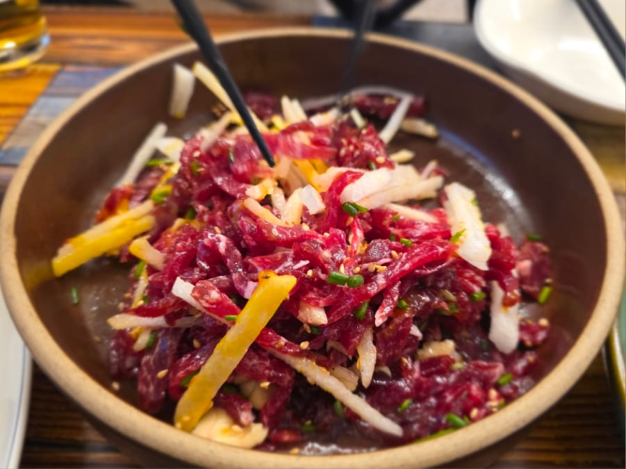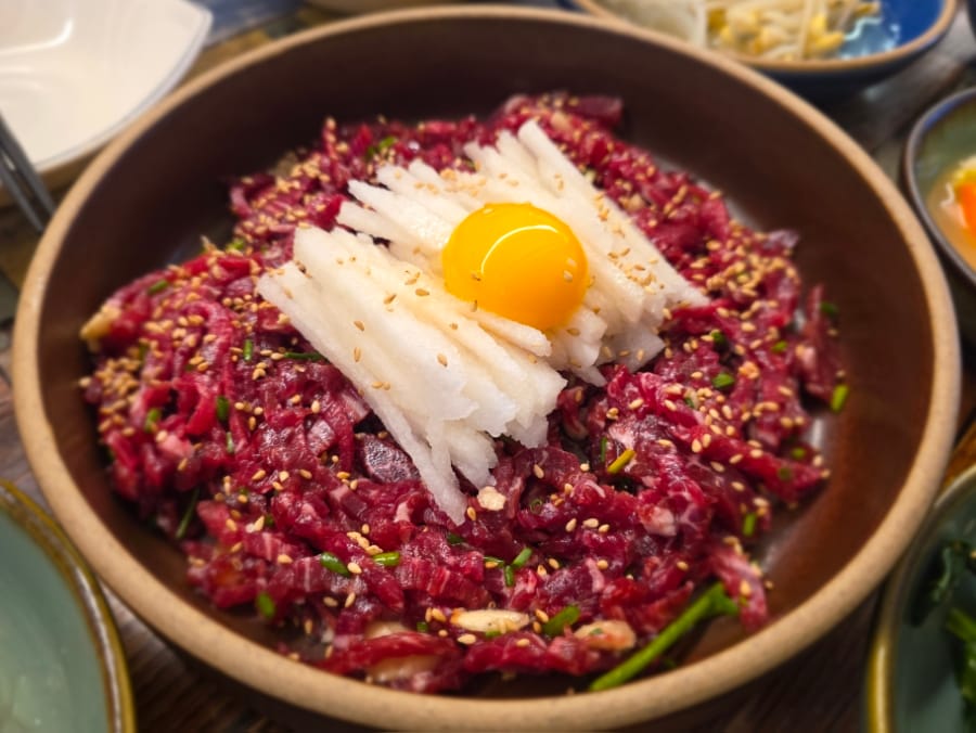 신선한 한우 육회에 술 한 잔 기울이기에는
