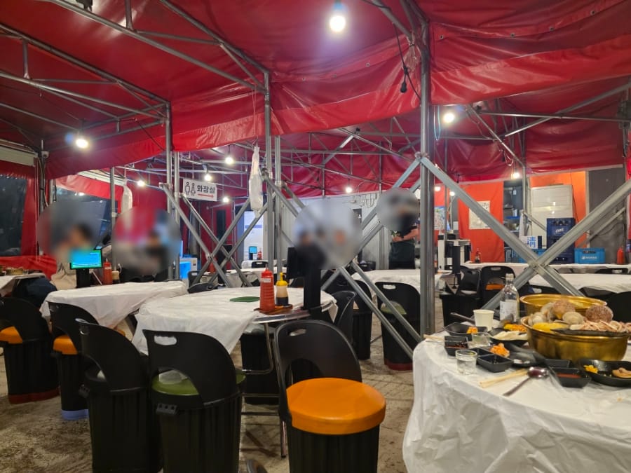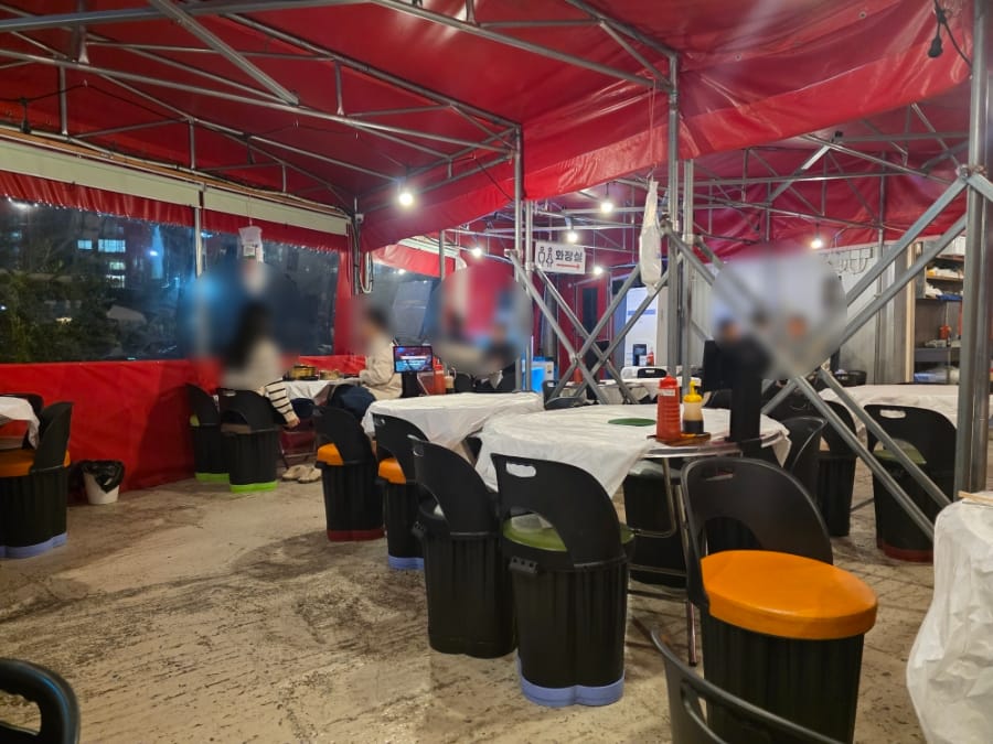 내부는 빨간 천막이 쳐진 포차 스타일입니다.