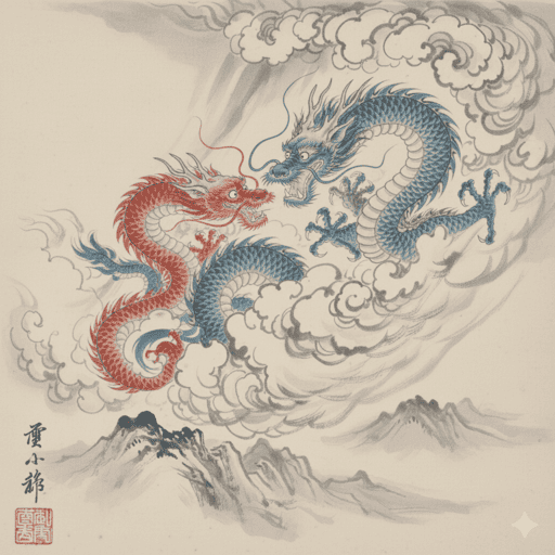 용 두 마리가 뒤엉킨 체 하늘로 올라가는 꿈을 꿨다면, 서로 패권 다툼을 하는 두 권력자나 강대한 두 세력을 보게 될 것입니다. 또는 훌륭한 남녀 한 쌍의 결혼을 예견할 수도 있죠.